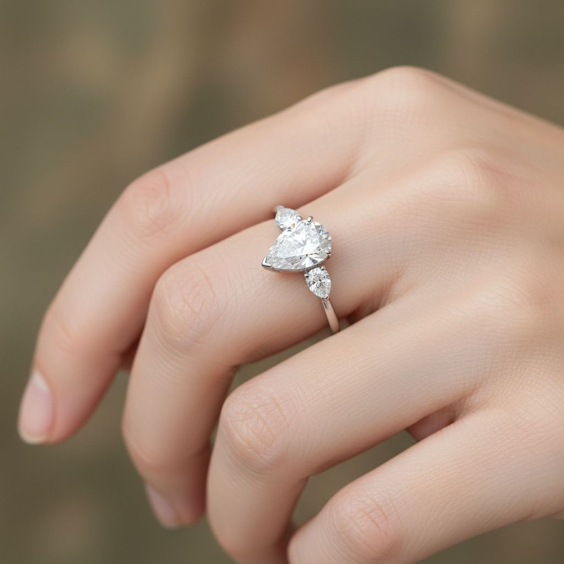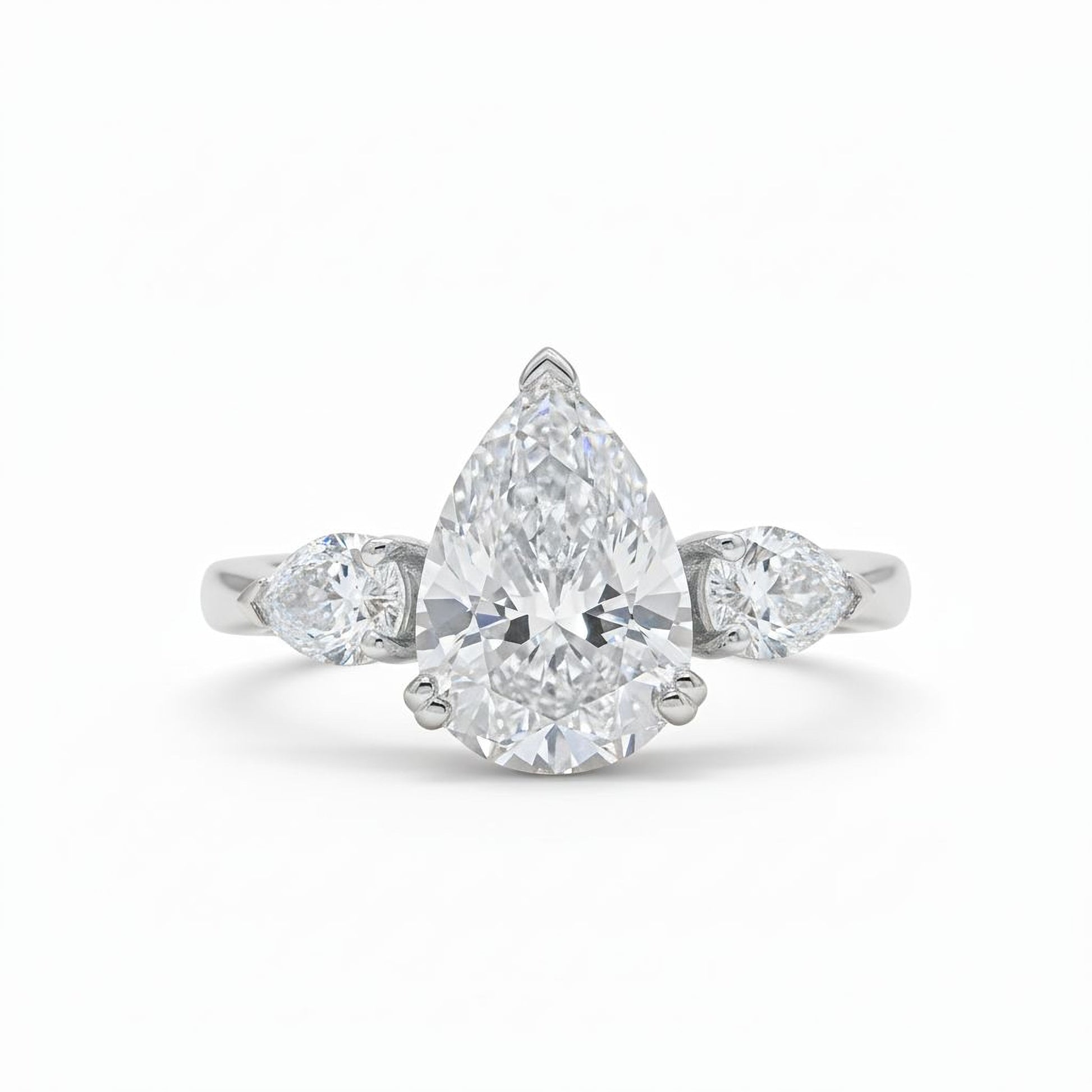 Add timeless elegance to your jewelry collection with this exquisite 925 Sterling Silver Pear-Cut CZ Diamond Ring, crafted to radiate brilliance from every angle. The design features a stunning pear-shaped center stone paired with two sparkling side CZ diamonds, creating a luxurious three-stone setting that symbolizes love, balance, and harmony.