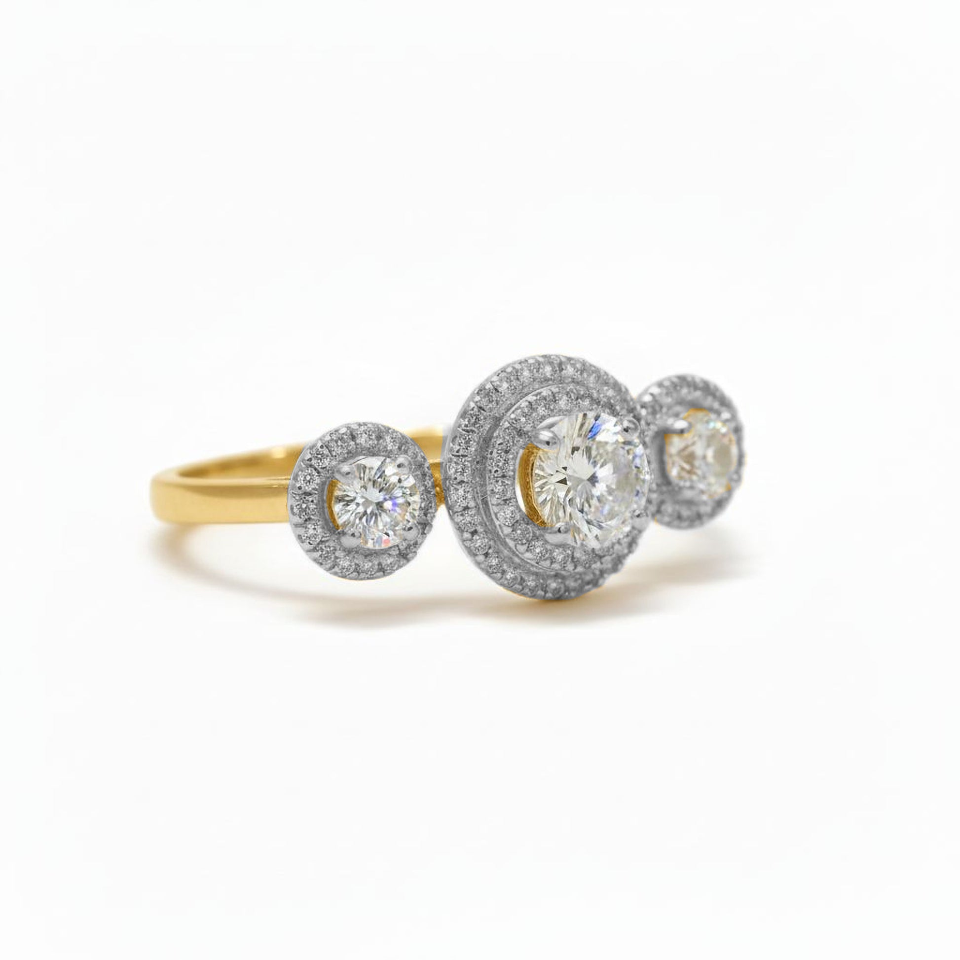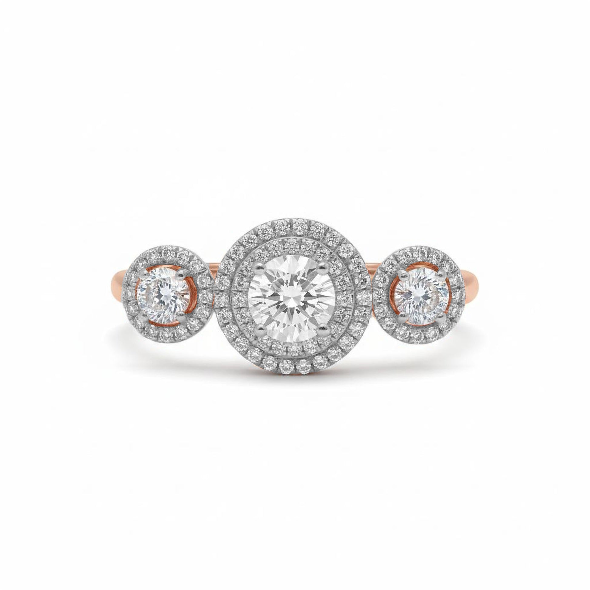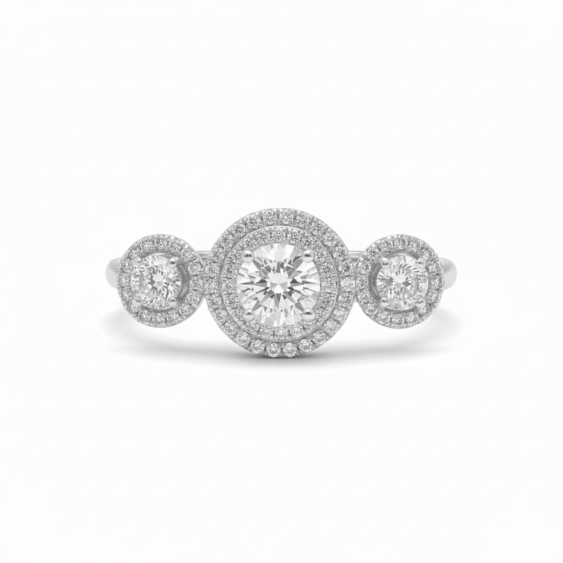 Stunning triple-halo design with radiant three-circle pattern